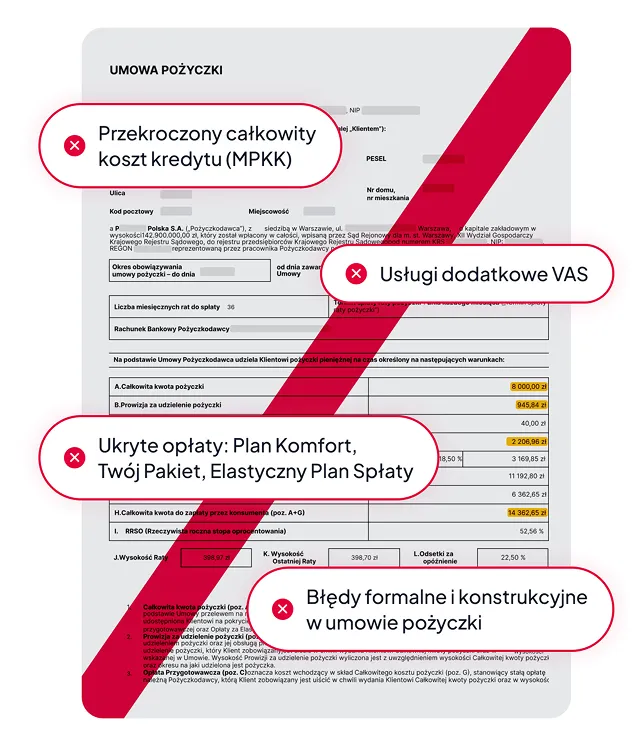 • dodatkowe usługi typu ubezpieczenia czy pakiety, które sztucznie podnoszą koszt pożyczki.Jeśli takie elementy są w Twojej umowie – możesz dochodzić swoich praw i odzyskać pieniądze